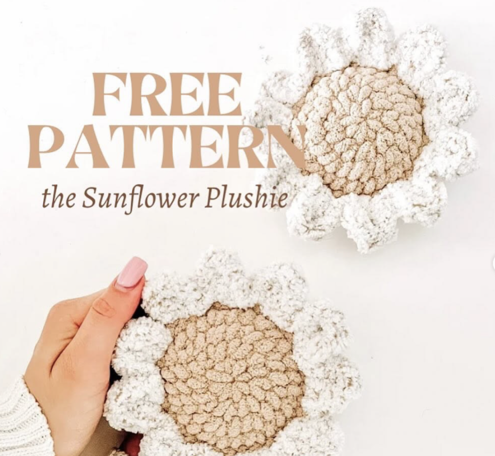 باترون واضح ومجاني لحياكة وردة تبّاع الشمس المحشوة، مناسب للهدايا اليدوية أو الزينة.
