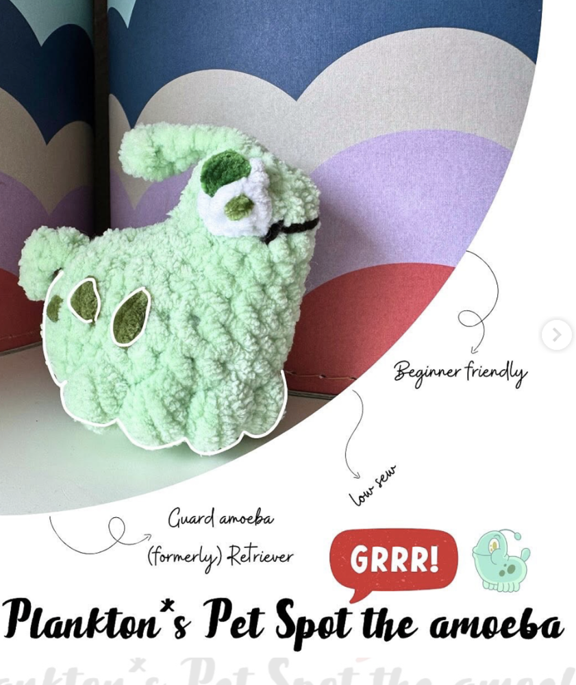 باترون كروشيه مجاني لتنفيذ دمية سبوت الأميبا (Spot the Amoeba)، الحيوان الأليف الشهير من عالم "سبونج بوب".
