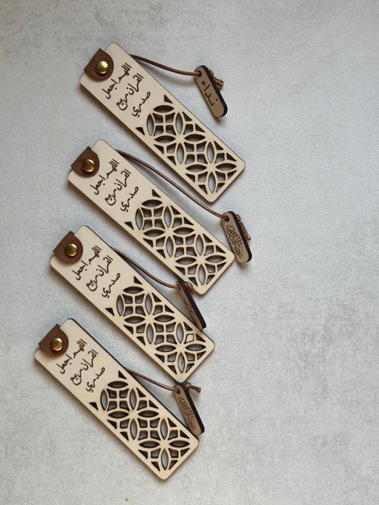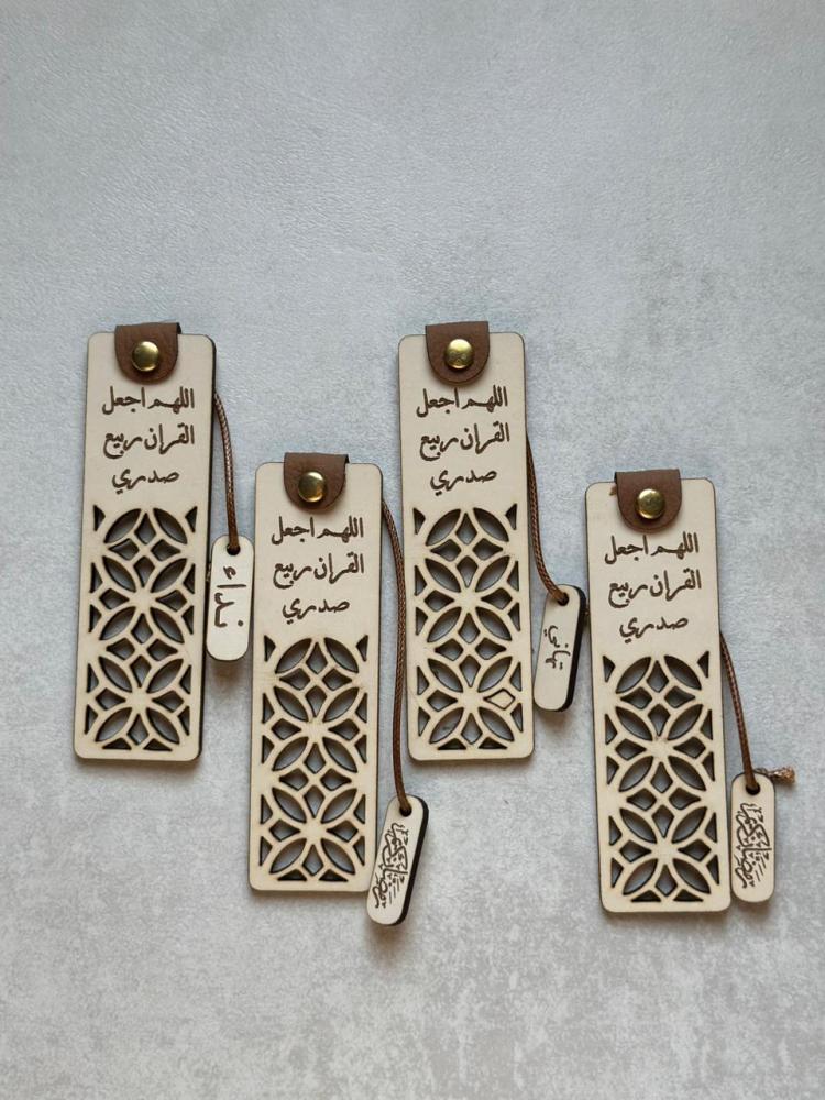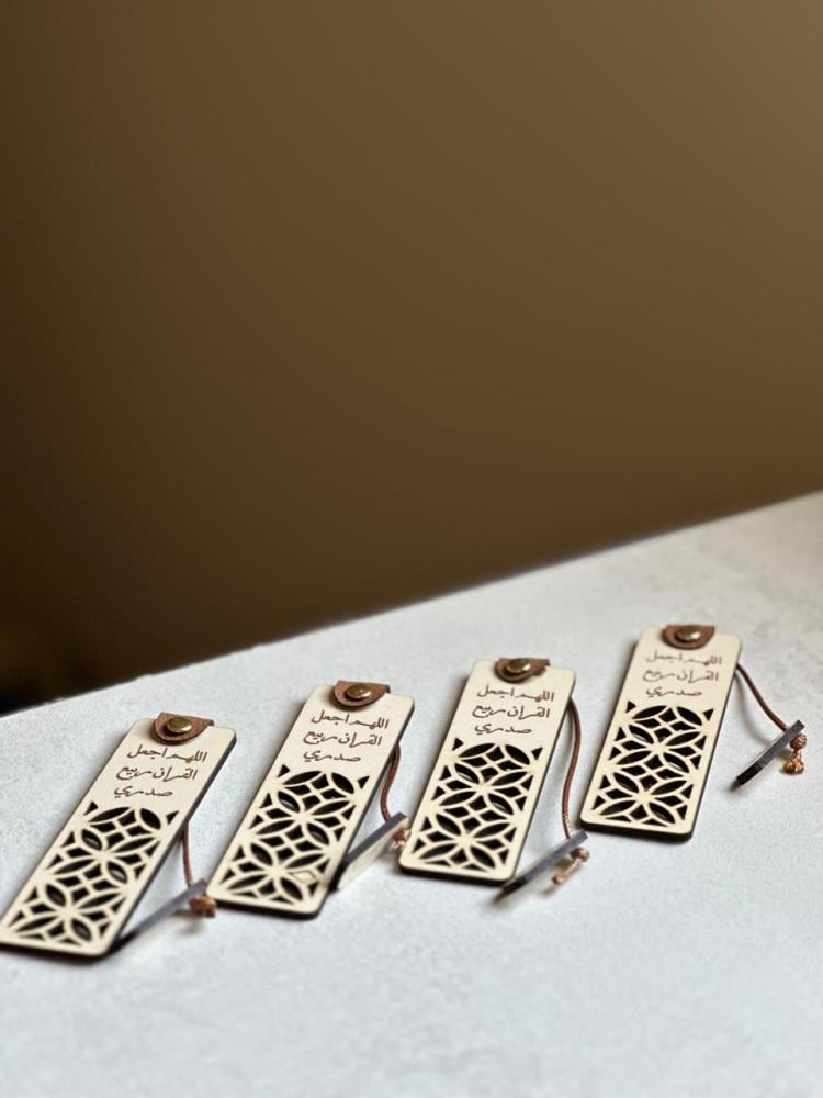 فاصل مصحف خشبي انيق مناسب للاهداء يضيف لمسة فنية مميزة لجلساتك الرمضانية، فاصل مصحفنا مصنوع من خشب فاخر وبزخرفة إسلامية رائعة. محفور بـ عبارة "اللهم اجعل القرآن ربيع صدري"، وليكون تذكير لك بفضل القرآن خلال الشهر الفضيل.